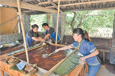 Dangznding dwg aeu gooij ma guhbaenz. Vunzmbanj daj ndawreih nyaeg gij oij gag ndaem maranz, dawz gooij nyaeg guh baenz mbaenq baenz mbaenq le gauj gij raemxoij okdaeuj, caiq daih gij namh、gij nuenx ndaw raemxoij deuz. Doeklaeng cij dawz raemxoij raix haeuj ndaw rek hung bae, aeu feiz iq cienq baenz 5~6 diemjcung, baez cienq de aeu ndau- ndawq deih, hawj gij raemx ndaw raemxoij baez di baez di fwi deuz, couh yienghneix, raemxdangz menh- menh couh bienq niu lo, sat le couh ndaej cienqok dangzliu, raix okdaeuj, dangzliu caep le couh gag gietguh dangzco, neix couhdwg ciendangzsa lo. Youq ndawrek cienq ndaej yied nanz, gij saek ciendangzsa couh yied hoengzgeq. Cungj fapdoj ciuhgonq neix ndaej ce gij yingzyangj gooij roengzdaeuj, aeu neix bae guh dangznding, gij dangz caemhcaiq miz cungj feihdauh lumj dangzremj daeg- bied nei.