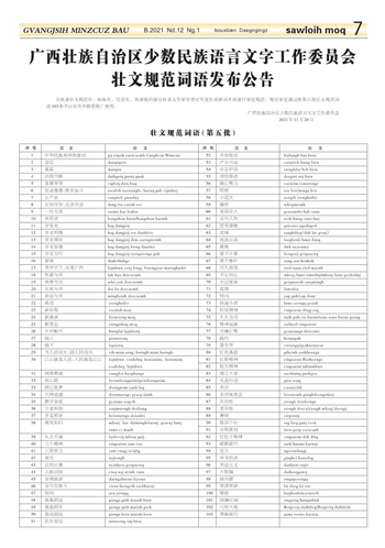 广西壮族自治区少数民族语言文字工作委员会 壮文规范词语发布公告
