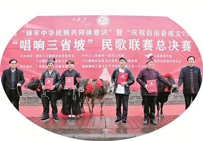 ▲1 Nyied 14 hauh, Sanhgyangh Dungcuz Swciyen guh baez satbyai “sing fwen yiengj youq ndoi sam swngj” Gvangjsih Huznanz Yinznanz caez doxdax eu fwen caeuq aen yizsiz fat ciengj. Seiqcib haj boux canghfwen aeu ndaej mbawcwng caeuq vaiz、mou、yiengz daengj ciengjbinj. Vunzlai yien ciengjbinj daegbied de angqangq yangzyangz ma gvaq cieng.
