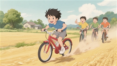 每天一放学,我就叫上村里的伙伴,到晒谷场骑车玩耍。车轮转动的沙沙声像轻快的音乐,带走了我所有的疲惫,我快乐得仿佛要飞起来。