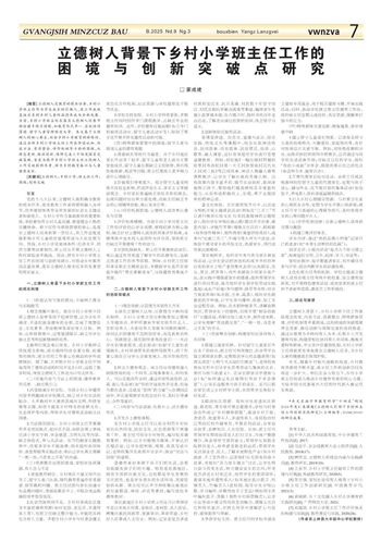 立德树人背景下乡村小学班主任工作的 困境与创新突破点研究