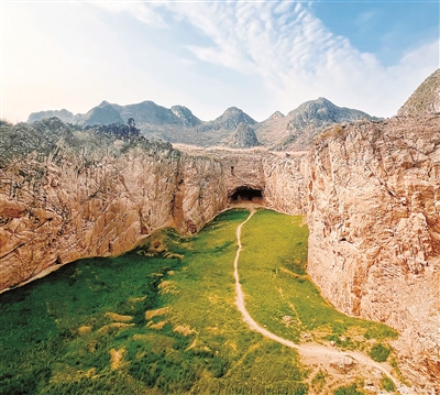 Youq Bingzgoj Si Gojva Cin Mbanjdunghmungj Gamjgimngaenz baihlaj haenx miz song aen gumzmbwn. Aen ndeu lumj aen doengj nei, bak gumz gvangq daihgaiq 60 mij, gig laeg, lajdaej seizseiz miz raemx, coengzlaiz mbouj miz vunz ndaej roengzbae gvaq, lingh aen gumz mbiengj baihgwnz lumj aen laeuhdouj, mbiengj baihlaj lumj aen doengj, aen conghgumz neix gvangq 70 mij daengz 80 mij baedauq, laeg daihgaiq 500 mij. Donh baihlaj lumj aen doengj nei bangxhenz cungj dwg rindat; donh baihgwnz lumj aen laeuhdouj nei sam mienh dwg rindat, ngamq miz aen geuq gaeb ndeu dwg rin gyaux namh. Moix bi doeng cin song geiq, daegbied dwg mbwnrengx seizde, aen gumzmbwn neix gij raemx yaep hwnj yaep roengz, gig geizheih. Youq aen gumzmbwn neix lajdaej de yaem miz aen raengzndaem ndeu, bak gvangq 5 mij daengz 10 mij, laeg geijlai mbouj rox.
