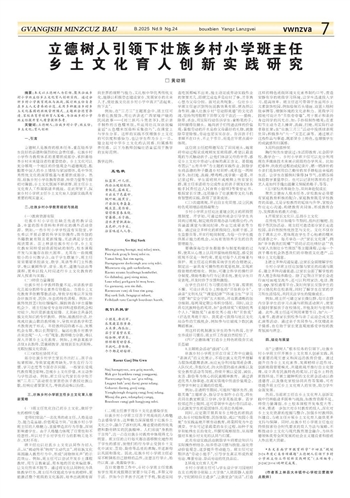 立德树人引领下壮族乡村小学班主任 乡土文化育人创新实践研究