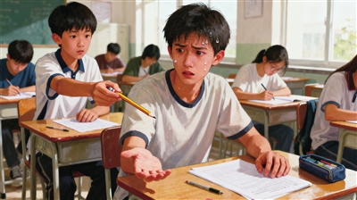 我也在争分夺秒地答题,不一会儿就做到了最后一道题。这道题需要用到铅笔画线。我打开文具盒,却惊讶地发现里面没有铅笔。我赶紧翻找书包,又把书桌里外找了个遍,还是不见铅笔的踪影。这下我可慌了神——没有铅笔怎么做图呢?