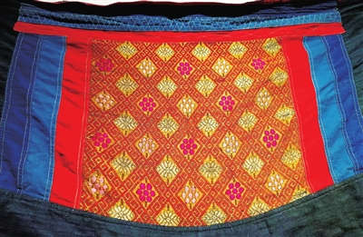 主服中的 “阑干衣”“琵琶襟”,是清末民初桂北、桂西地区的流行款式;背带以 “田字格” 为基础,与邻近壮族背带样式近似;织锦则与环江水源镇壮族、贵州荔波布依族织锦共享 “桂西北壮侗支系织锦风格”,几何纹样、提花技艺一脉相承。如环江驯乐乡布依族团花织锦背带与下南乡毛南族织锦背带,虽整体花纹相似,但菱形格纹细节各异,体现 “交融中存差异” 的特点。