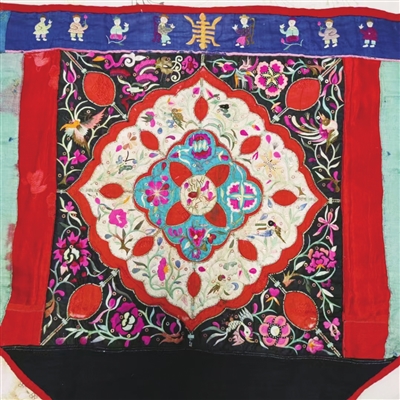 毛南族传统服饰的主服简约内敛,但婴儿背带、婚嫁被面等 “特殊物件” 却极尽华丽,暗含对生命与家庭的祝福,形成 “日常素朴、仪式隆重” 的鲜明对比。